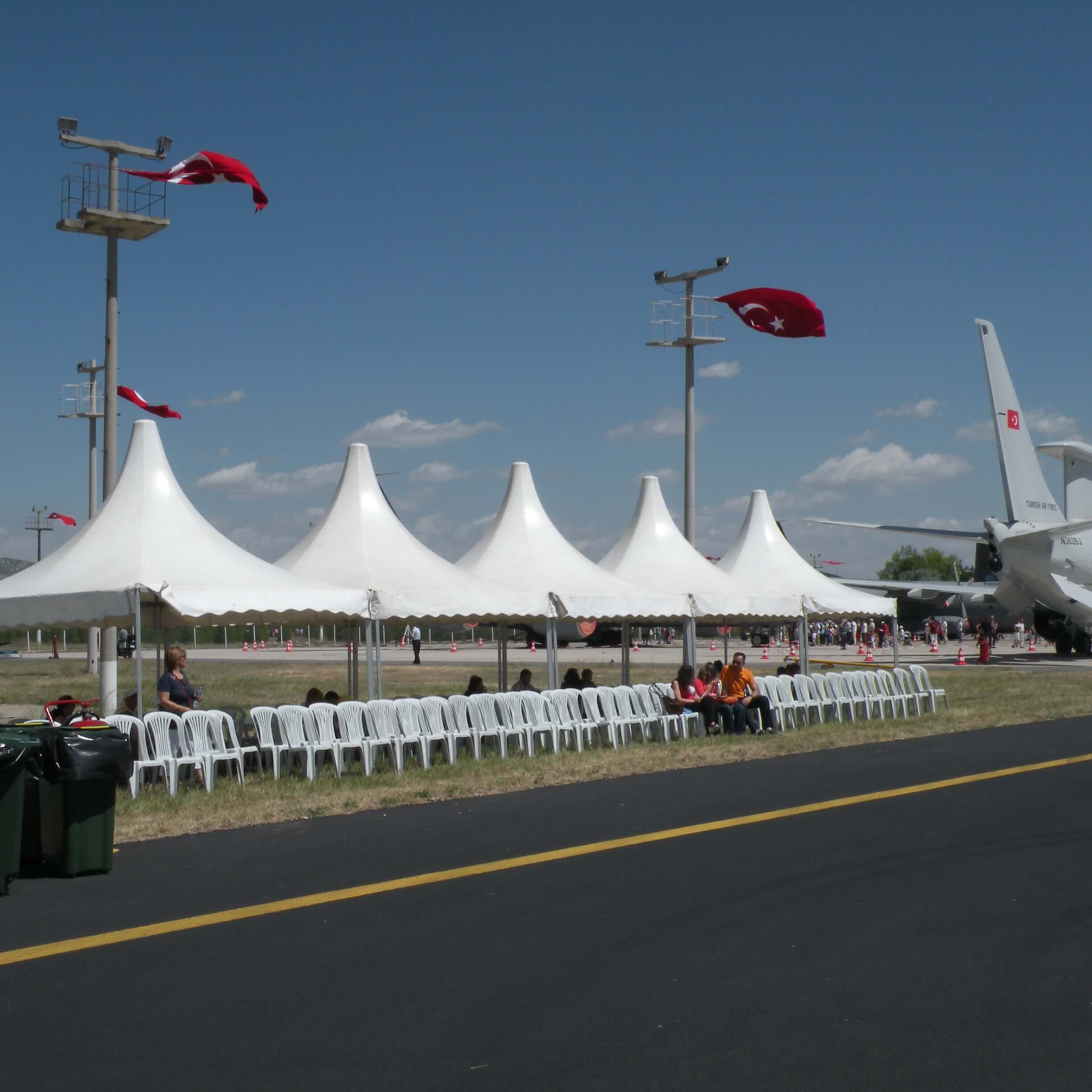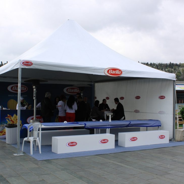 Geçici olarak satış ofislerinin kurulmasında düzenlenen kampanyalarda ürünlerin tüketici ile direk buluşması için açık alanlara kurulacak bu çadırlar beklentilerin karşılanmasını sağlamaktadır. Özellikle son yıllarda çadır günleri adı altında pek çok firma indirim kampanyaları düzenlemekte ve bu çadırların uygun maliyeti ile ekstra masraflara girmeden ürünlerinin tüketici ile buluşmasını sağlamaktadırlar. Kısa sürede kurulmakta ve sökülmekte olan çadırlar ile fuar alanında olumsuz hava koşulları olduğunda müşterilerin içeri girmesi ve korunması mümkün olmaktadır. Sağlam iskeleti ile de rüzgardan etkilenmemektedir.